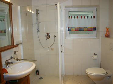 Im Bad mit Dusche und WC ist auch ein Fön vorhanden